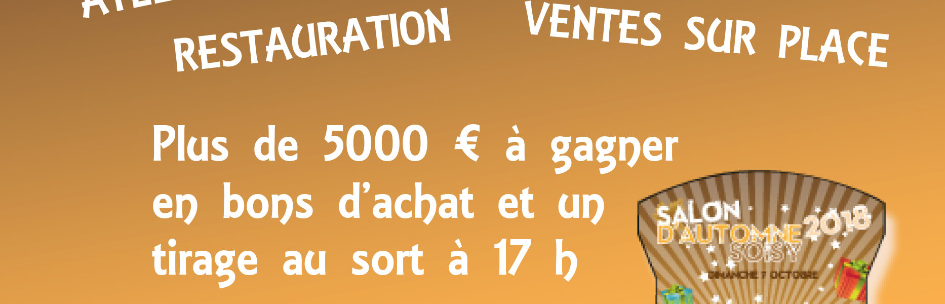 Nous avons le plaisir de vous informer que nous serons présents au salon d’automne des Artisans Commerçants de Soisy qui se tiendra le dimanche 7 octobre 2018, à la salle des fêtes de Soisy Sous Montmorency (16 avenue du Général de Gaulle), de 10h00 à 18h00.